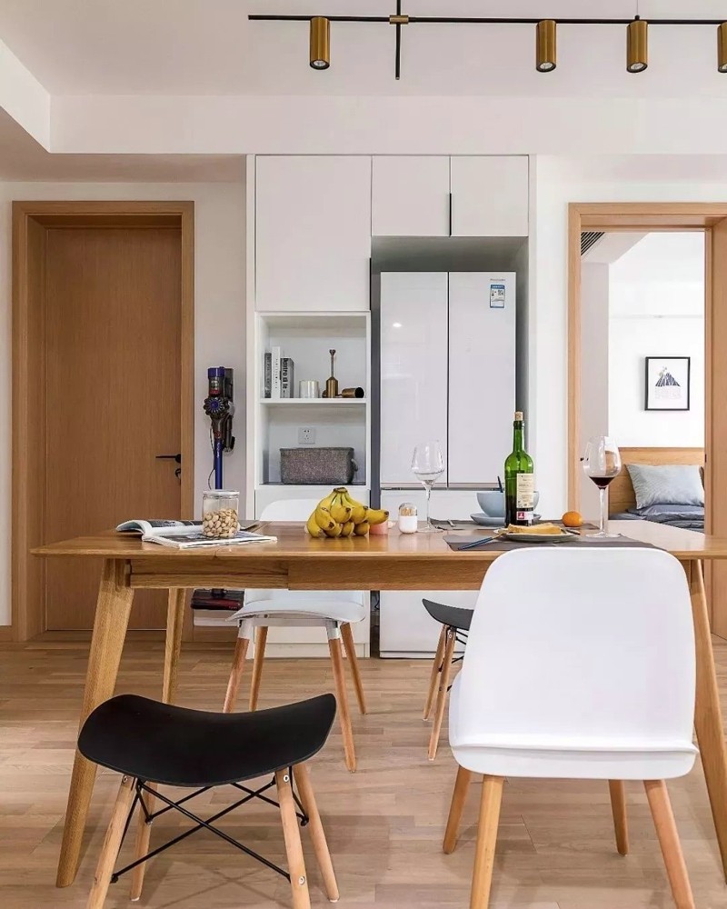 由此可見,冰箱的內(nèi)容實際上反映了我們的生活狀態(tài)、興趣愛好和生活方式,有孩子的家少不了輔食儲奶,獨居的人可能常常留著快餐,女生的面膜需要低溫儲存等等。而這些物品,都不歸屬于廚房。住得舒服的家都有一個共性,就是物品的存放地點靠近使用地點,需要的時候順手就可以拿到。所以,冰箱放在餐廳,比放在廚房更合適,冰箱組合餐邊柜,成為時下的熱門設(shè)計。 冰箱這個大物件到底應該怎么放呢?如果放餐廳、過道等地是否可以,又要注意哪些問題? 一、冰箱放廚房