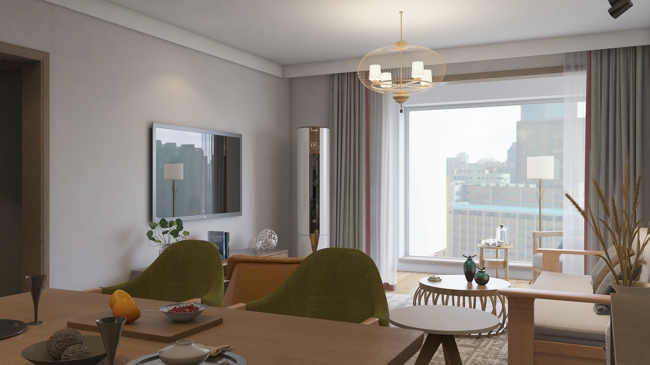 玄關處地面是原木色的木地板,家具是采用的原木色的木質家具,整體給人一種特別溫馨的感受。餐桌旁邊放置的綠植更是給整個空間增添了清新活力。
