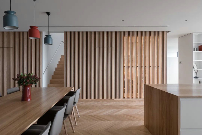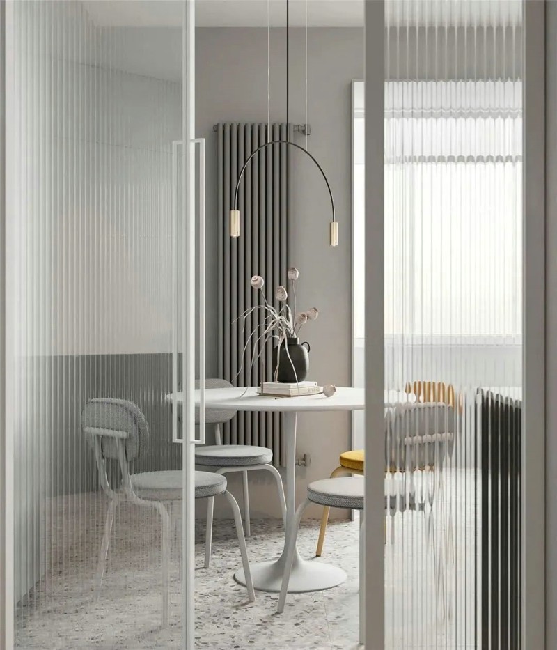 垂直而下的豎形條紋有著不同于平面的凹凸質(zhì)感,在陽(yáng)光的照射下,還能形成獨(dú)特的折射光線,讓整個(gè)家都美輪美奐。
